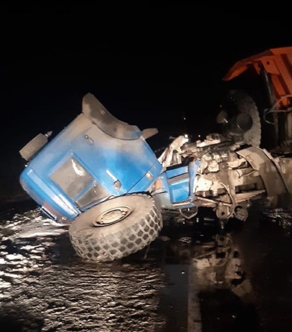 По предварительной информации, 54-летний водитель КамАЗа, следуя в сторону Омска, не справился с управлением на 456-м километре дороги и выехал на встречную полосу, где столкнулся с фурой «Мерседес» под управлением 43-летнего мужчины. На фотографиях с места происшествия видно, что от удара кабину отечественного самосвала чуть ли не полностью оторвало.