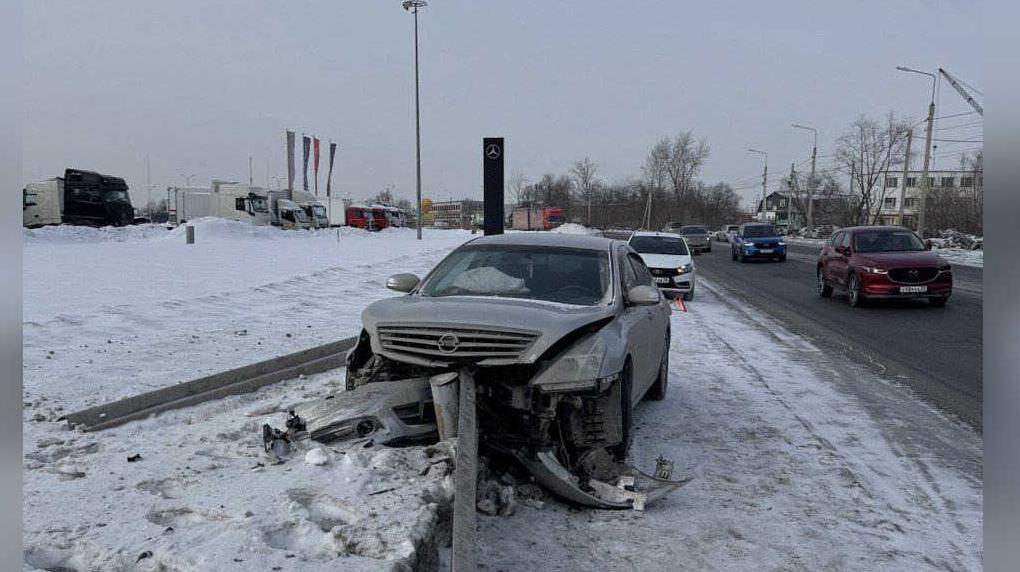По предварительным данным, женщина 1982 года рождения за рулём автомобиля «Ниссан» не справилась с управлением и допустила наезд на транспортное ограждение. Судя по приложенному фото, машина буквально наделась на конструкцию.