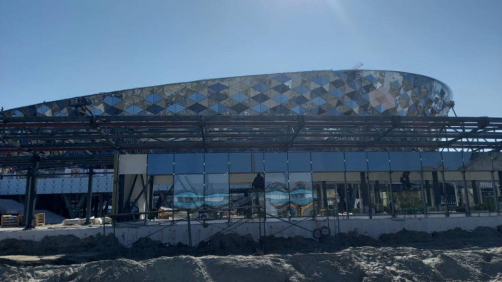 Многослойную кровлю начали монтировать на новой ледовой арене в Новосибирске. ФОТО Оформление внешнего вида комплекса подходит к концу. Рабочие приступили к остеклению входных зон.