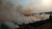 Огонь пришёл в Колосовский район с болот Тюкалинского района широкой линией. Тушение пожара осложняет сразу несколько факторов: труднодоступная заболоченная местность и промерзшая земля, которую невозможно распахать плугом для задержки огня. Накануне для борьбы с пожаром был запущен встречный пал.