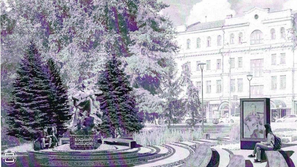 Появились окончательные эскизы памятника Владимиру Высоцкому, который планируют открыть в Омске. Как стало известно порталу Om1 Омск, памятник разместят в центре Воскресенского сквера — на пересечении пешеходных дорожек.